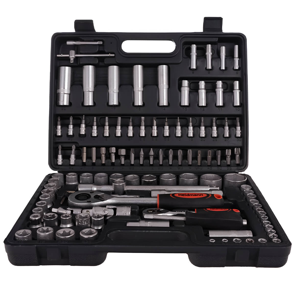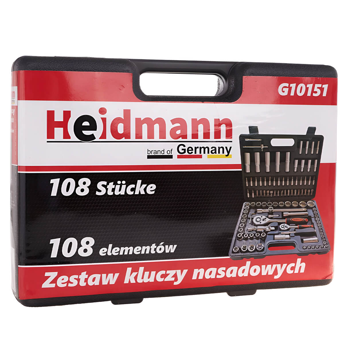 Setul de instrumente HEIDMANN G10151 este un kit universal format din 108 chei tubulare și biți, fabricate din oțel crom-vanadiu de înaltă calitate, ideal atât pentru amatori, cât și pentru semi-profesioniști.