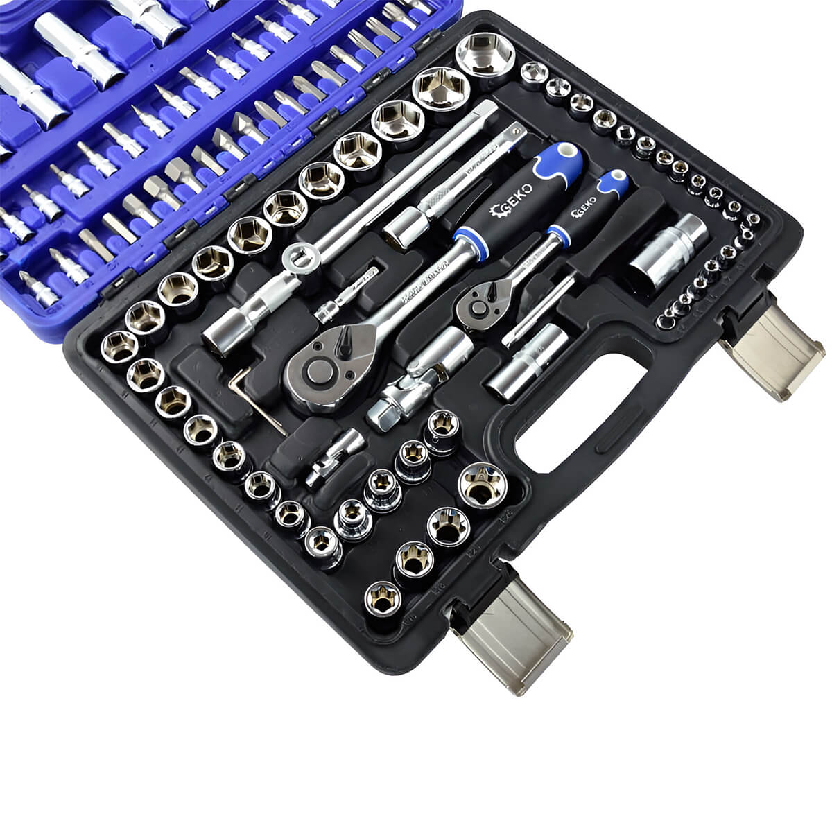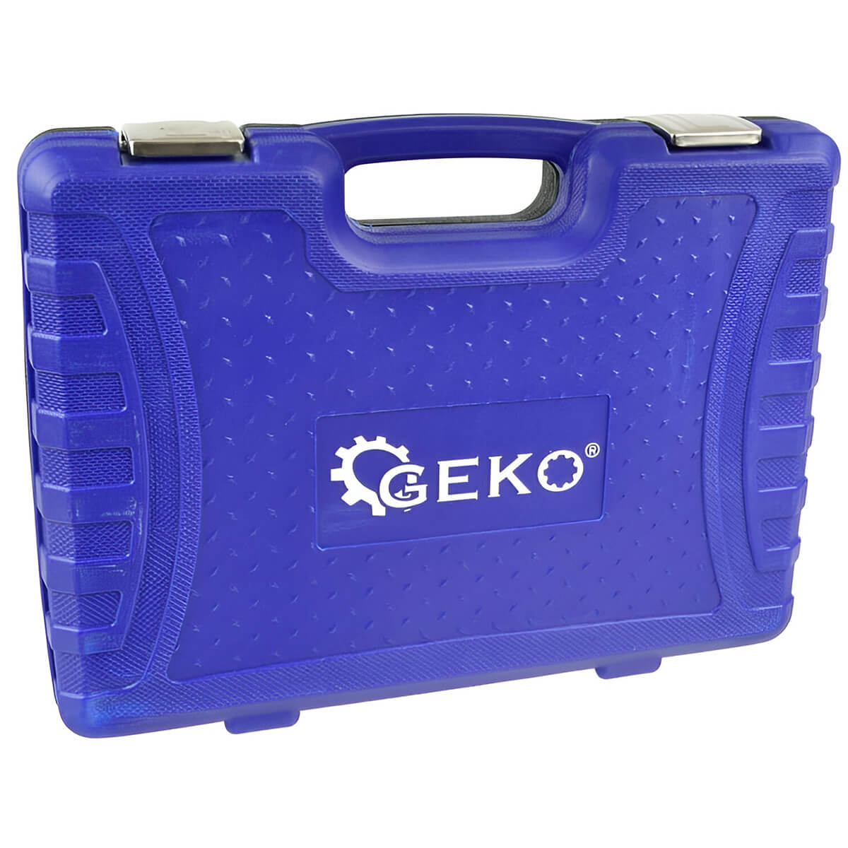 Setul de instrumente GEKO G10101, format din 108 obiecte, este un kit universal destinat utilizării în ateliere, centre de service și acasă. Cheile și toate componentele sunt fabricate din oțel crom-vanadiu de înaltă calitate, asigurând durabilitatea și fiabilitatea acestora.