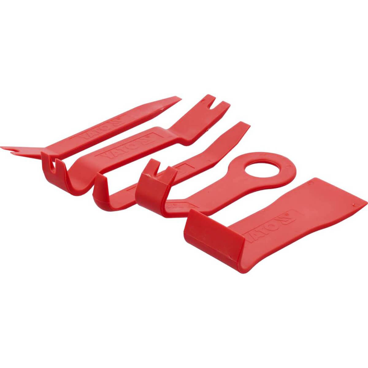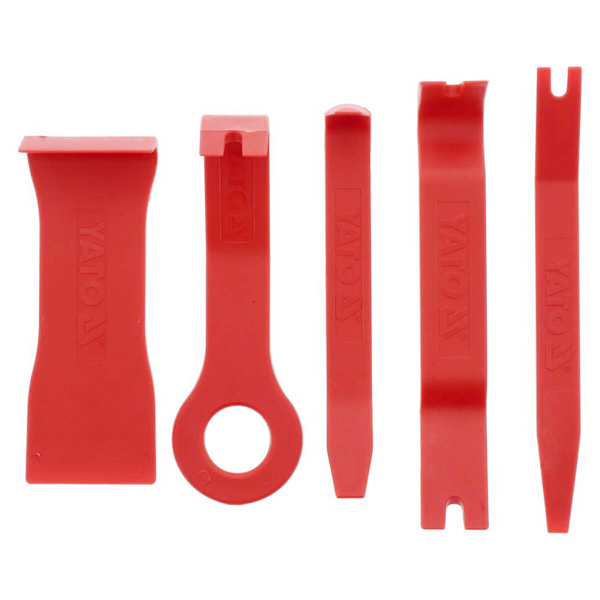 Set de unelte pentru demontarea tapițeriei auto YATO YT-0836 – soluția ideală pentru îndepărtarea delicată a panourilor din interiorul autoturismului. Setul conține 5 unelte specializate, fiecare proiectată pentru a lucra cu diferite tipuri de prinderi și finisaje.