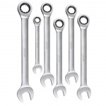 Cheile sunt fabricate din oțel crom-vanadiu rezistent, asigurând durabilitate și rezistență la coroziune. Datorită designului combinat, fiecare cheie este echipată atât cu un cap deschis, cât și cu un profil inelar cu clichet, facilitând lucrul în spații greu accesibile.