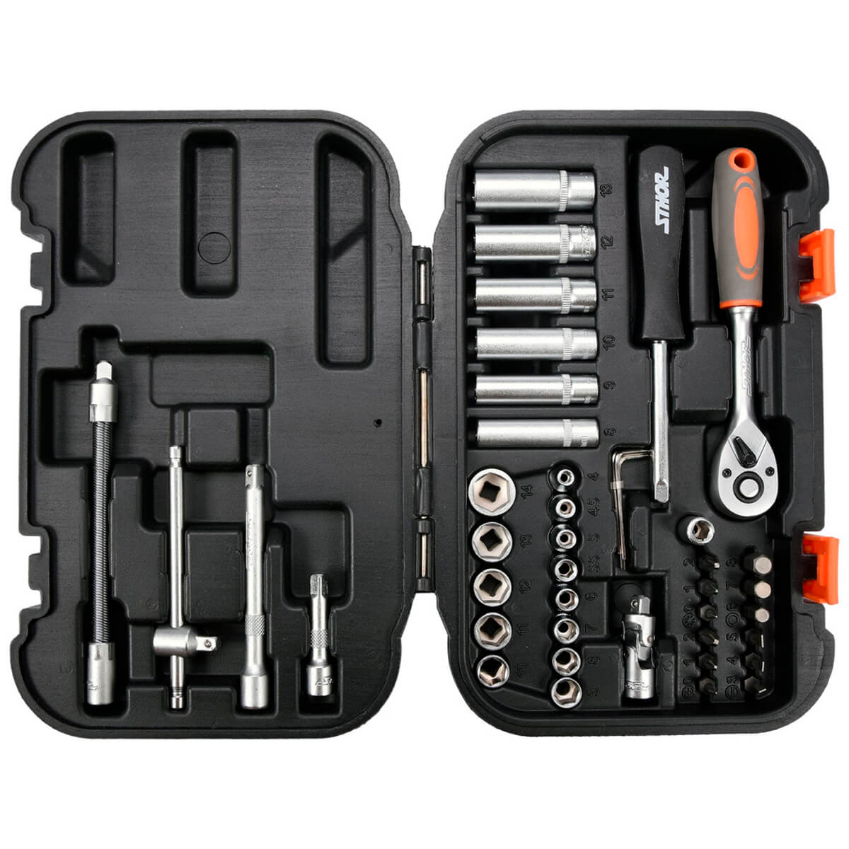 Set de cap chei tubulare STHOR XS CrV 1/4″ 4–14 mm, 42 obiecte, valiză (Art. 58641) — este un set universal de unelte conceput pentru lucrări precise și fiabile în gospodărie, atelier auto sau service. Toate componentele sunt aranjate cu grijă într-o valiză compactă, asigurând depozitare și transport convenabil.