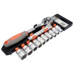 Mânerul cu clichet ergonomic și funcție de inversare permite o muncă rapidă și eficientă chiar și în spații greu accesibile. Mecanismul cu rotiță asigură comutarea precisă și confort pe termen lung.