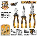 Setul de clește INGCO 3 buc. INDUSTRIAL HKHLPS2832 este un set de trei unelte fiabile și durabile, care include clește combinat, clește de tăiat și clește alungite.
