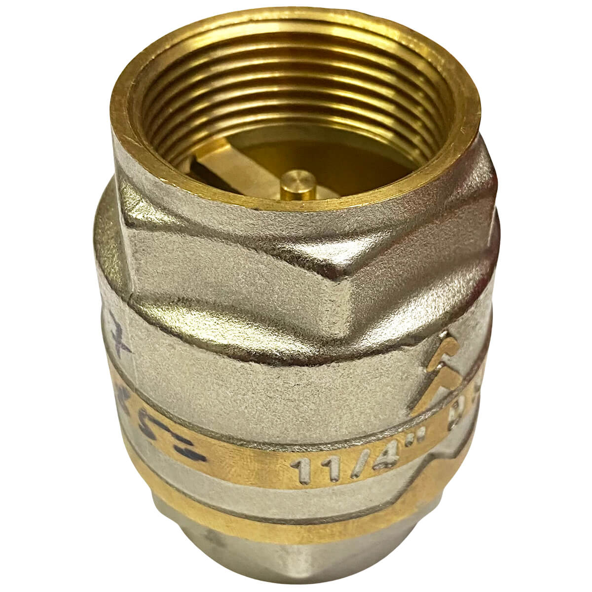 Supapă de sens Hydro-S 1 1/4 filet intern x 1 1/4 filet intern din alamă 7010618 - Acest produs este utilizat pentru a preveni inversarea fluxului în sistemele de alimentare cu apă și de încălzire realizate din țevi din oțel și fontă.