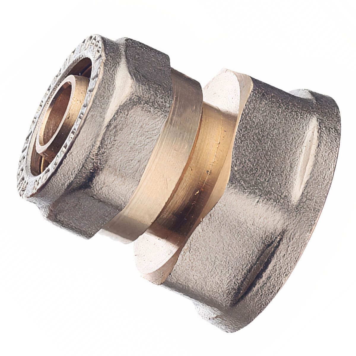 Conector drept 16 strângere mm x 3/4 cu filet intern - Utilizat ca o tranziție de la un sistem de țevi din metaloplast cu diametrul de 16 mm la alte sisteme paralele care utilizează o conexiune filetată internă de 3/4".