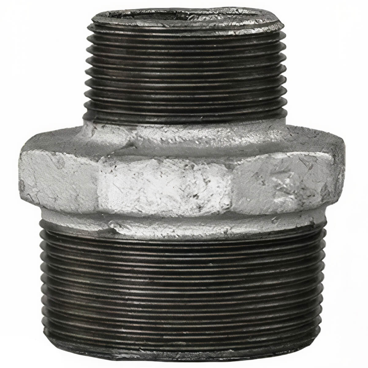 Niplu adaptor HYDRO-S 2 filet extern x 1 filet extern din fontă zincată 1024519 - Este utilizat ca o conexiune directă cu filet exterior. Niplul este, de asemenea, utilizat ca adaptor atunci când este necesar să se treacă de la filet interior la filet exterior.