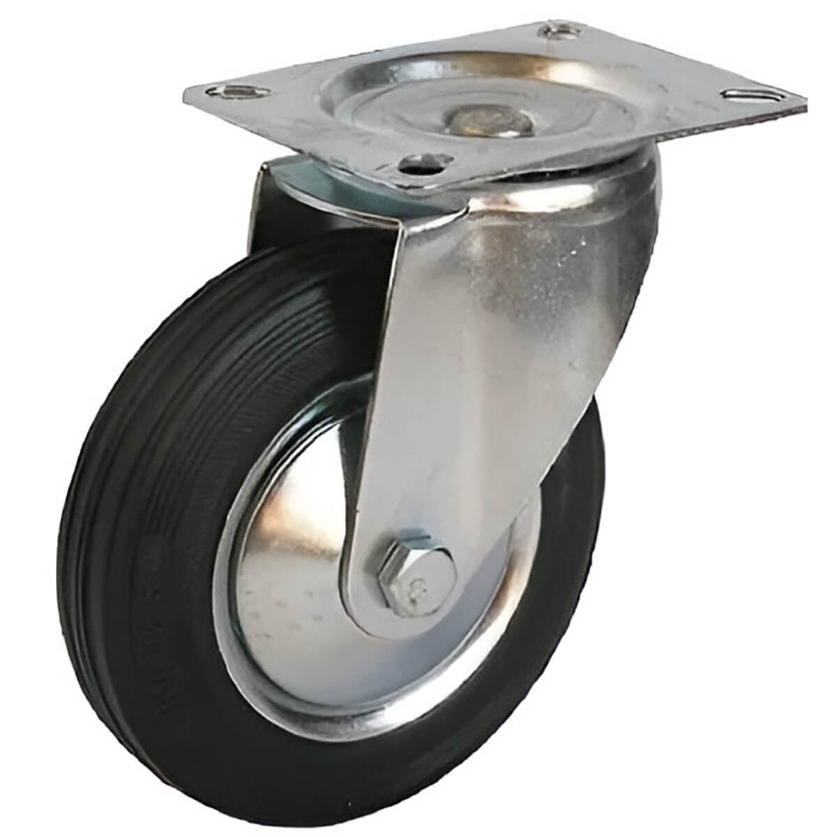 Roată rotativă Colson d.125 mm, 4001-125 – o soluție fiabilă pentru structuri mobile. Combină durabilitatea oțelului zincat cu elasticitatea cauciucului negru, asigurând stabilitate și rulare lină.