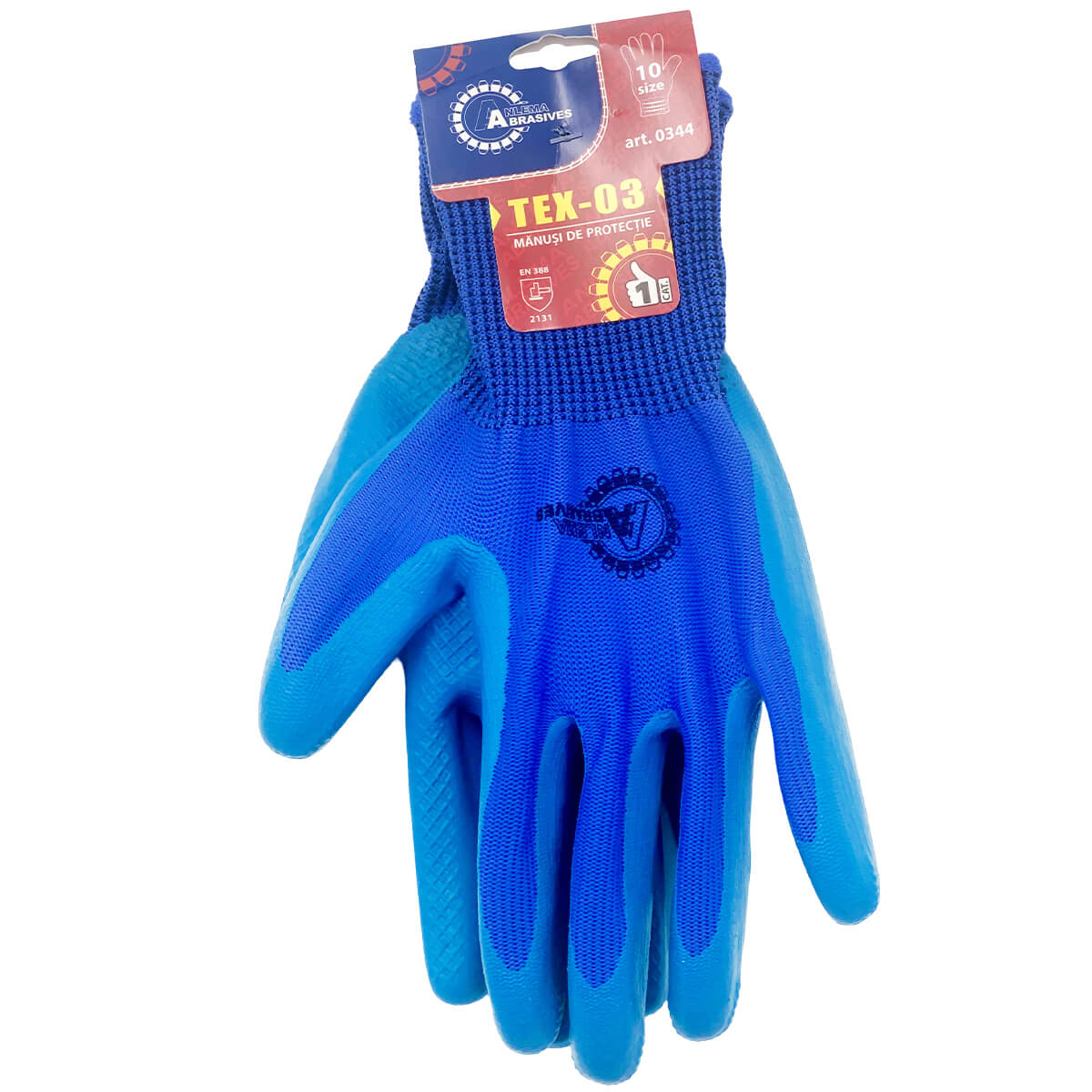 Mănuși de protecție Anlema Abrasives TEX-03 acoperite cu nitril, mărime 10, albastru (Art. 0344) - Foarte rezistent la uzură, asigură o aderență excelentă în medii uscate și ușor uleioase. Se potrivește perfect la mână pentru confort în timpul utilizării prelungite.