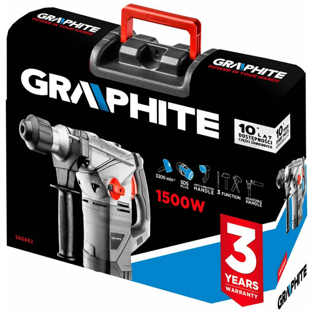 Ciocanul rotopercutor puternic și fiabil GRAPHITE 58G862 este conceput pentru sarcini profesionale și de uz casnic. Datorită motorului de 1500 W și energiei de impact de 4,5 J, acest instrument se descurcă eficient cu materiale dure, precum betonul, cărămida, lemnul și metalul. Designul ergonomic și construcția echilibrată asigură confort în utilizare chiar și pentru perioade îndelungate.