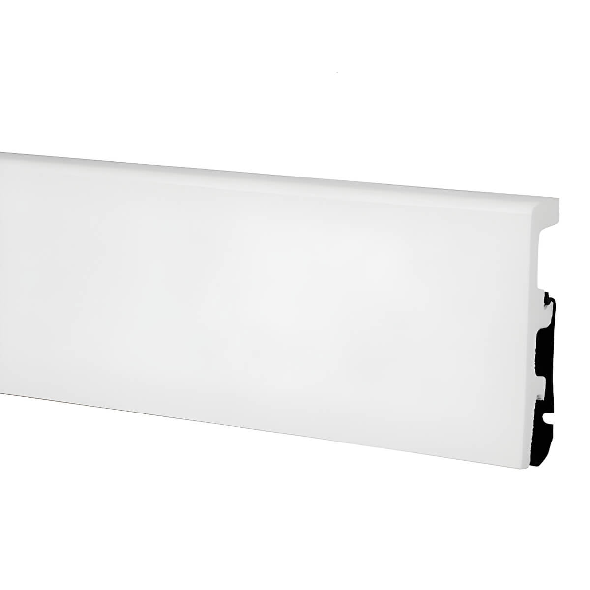 Plintă pentru podea din videlit Arbiton INTEGRA 01 Albă 20x80x2400 mm - Colecția de plinte INTEGRA recreează plinte din lemn, dar sunt realizate din duroplastic, un material ecologic, dur și rezistent la apă. Acestea sunt rezistente la impact și la forme și sunt potrivite pentru instalarea pe podele încălzite.