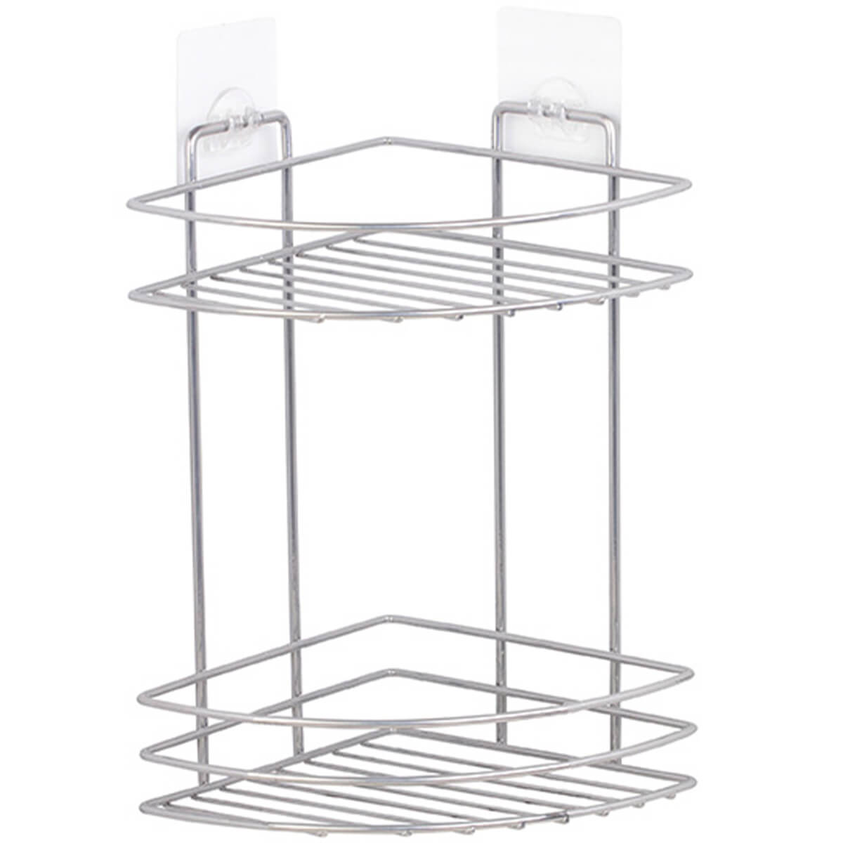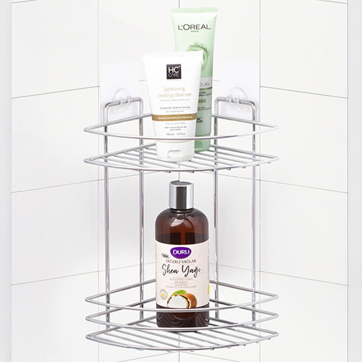 Raft pentru baie unghiular Metalife Magic Fix MKB-716 2 nivele, 18 cm, crom, fără găurire, din oțel inoxidabil