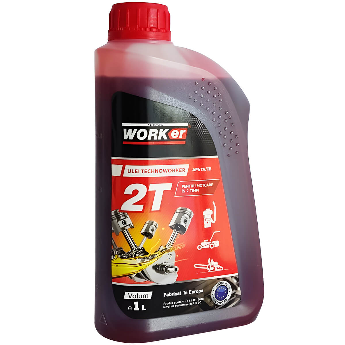 Uleiul pentru motor în 2 timpi WORKER Technoworker de 1 litru conține aditivi de ultimă generație care previn oxidarea, coroziunea, uzura și formarea de depuneri. Îndeplinește standardele japoneze și europene. Asigură o lubrifiere suficientă la un raport de amestec de 1:50. Nu este recomandat pentru motoarele cu bioetanol. Potrivit pentru echipamente de grădinărit și motoare pe benzină cu preamestec sau injecție de ulei.