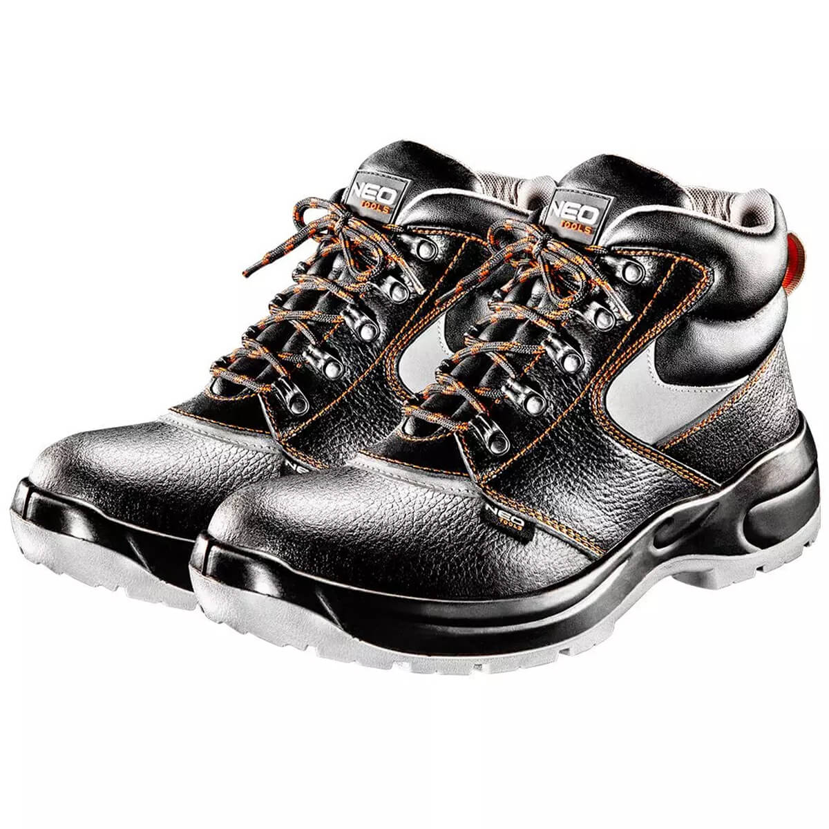 Bocancii de lucru NEO Tools (art. 82-025), mărimea 44, asigură protecție și confort de încredere în timpul muncii. Partea superioară este realizată din piele de înaltă calitate, cu inserții reflectorizante, care garantează vizibilitate în orice condiții. Talpa antiderapantă cu sistem de amortizare mărește siguranța și confortul în mișcare.
