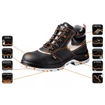 Branțul metalic împotriva perforațiilor și vârful metalic întărit protejează împotriva deteriorărilor mecanice. Căptușeala moale din interiorul bocancilor asigură un nivel ridicat de confort în timpul purtării îndelungate. Marcajul CE confirmă conformitatea cu toate cerințele de siguranță ale UE. Bocancii de lucru NEO — alegerea profesioniștilor pentru protecție maximă și confort.