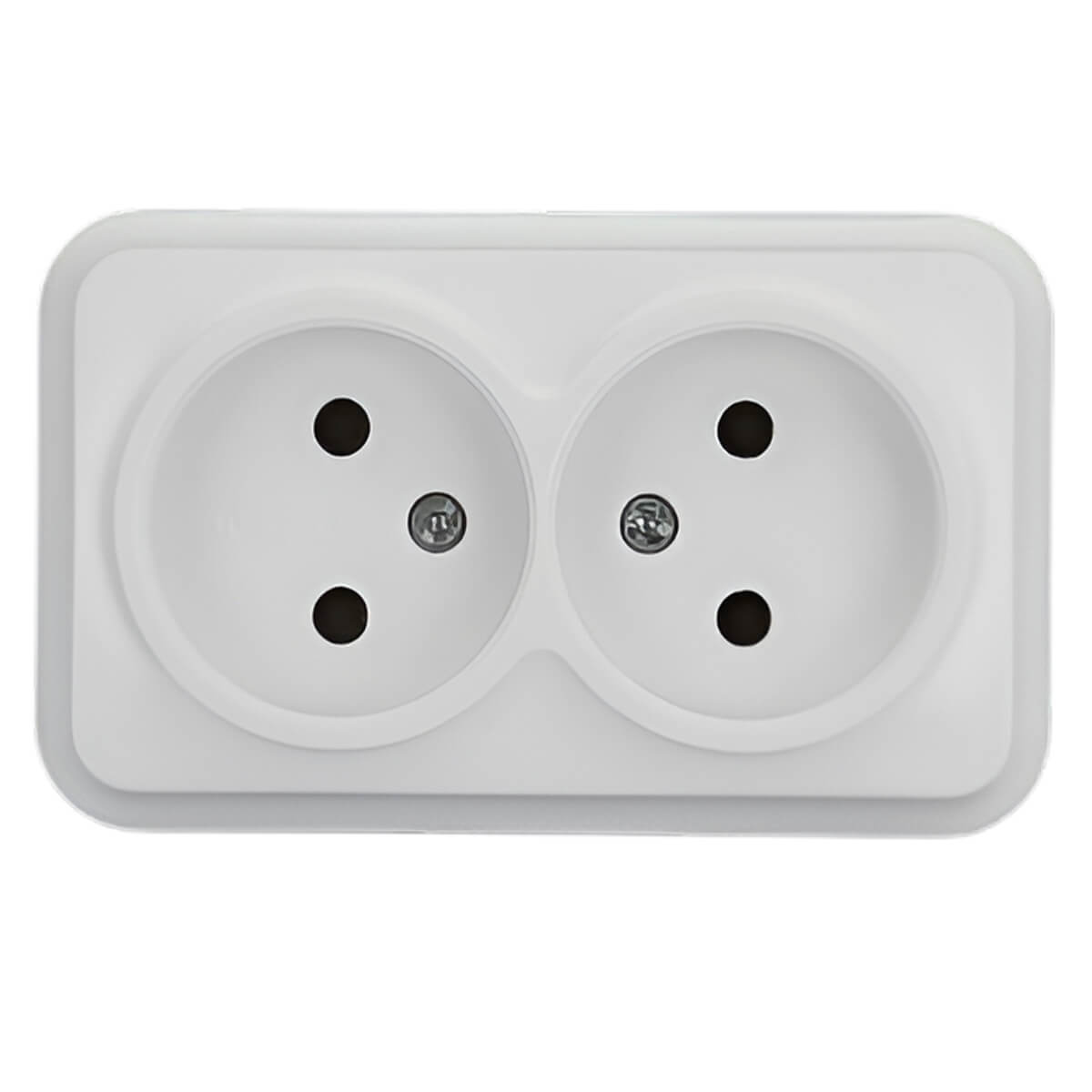 Priză dublă 1000kW Selena 2P, 10A, albă, 220-250 V, IP20 KW-0206-0609 — destinată pentru conectarea simultană a două aparate electrice în locuință sau birou. Modelul combină practicitatea, simplitatea montajului și un design modern.
