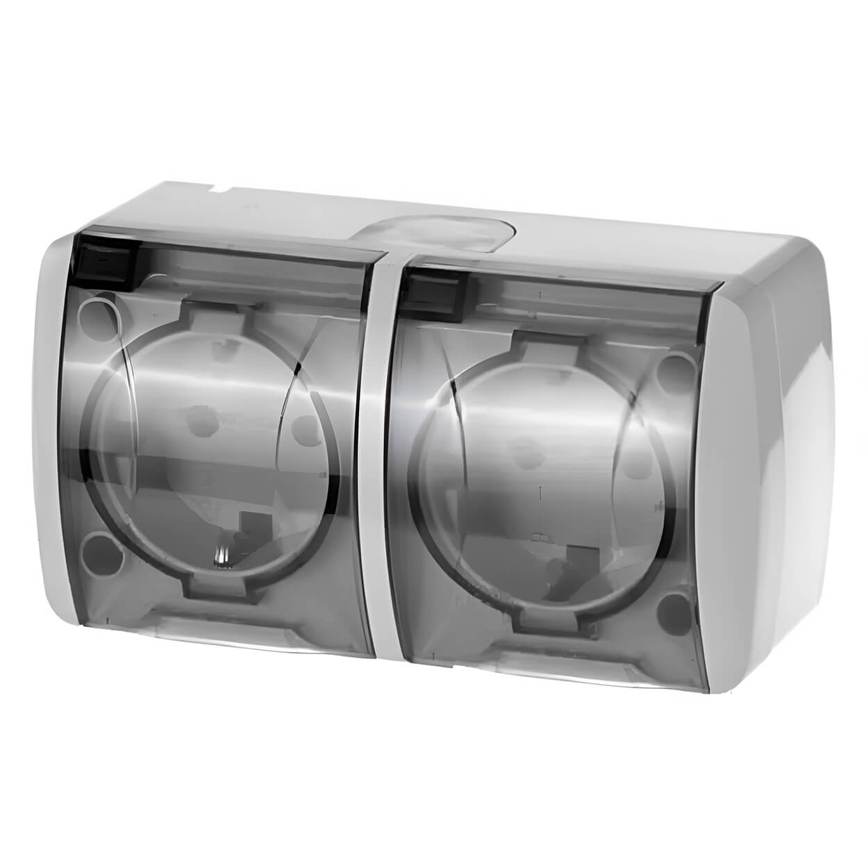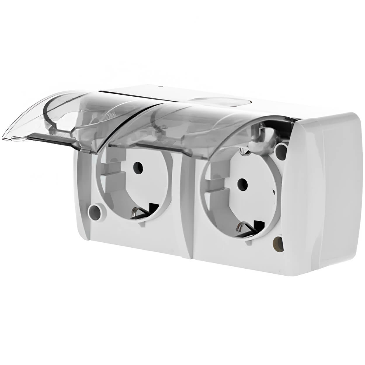 Priza cu capac de instalare deschisă, două locuri, marca ELBI, de culoare albă, modelul 554-011500-938. Este dotată cu două ghișee. Se instalează pe suprafață, fără capac. Este de culoare albă. Ușor de utilizat și de instalat.