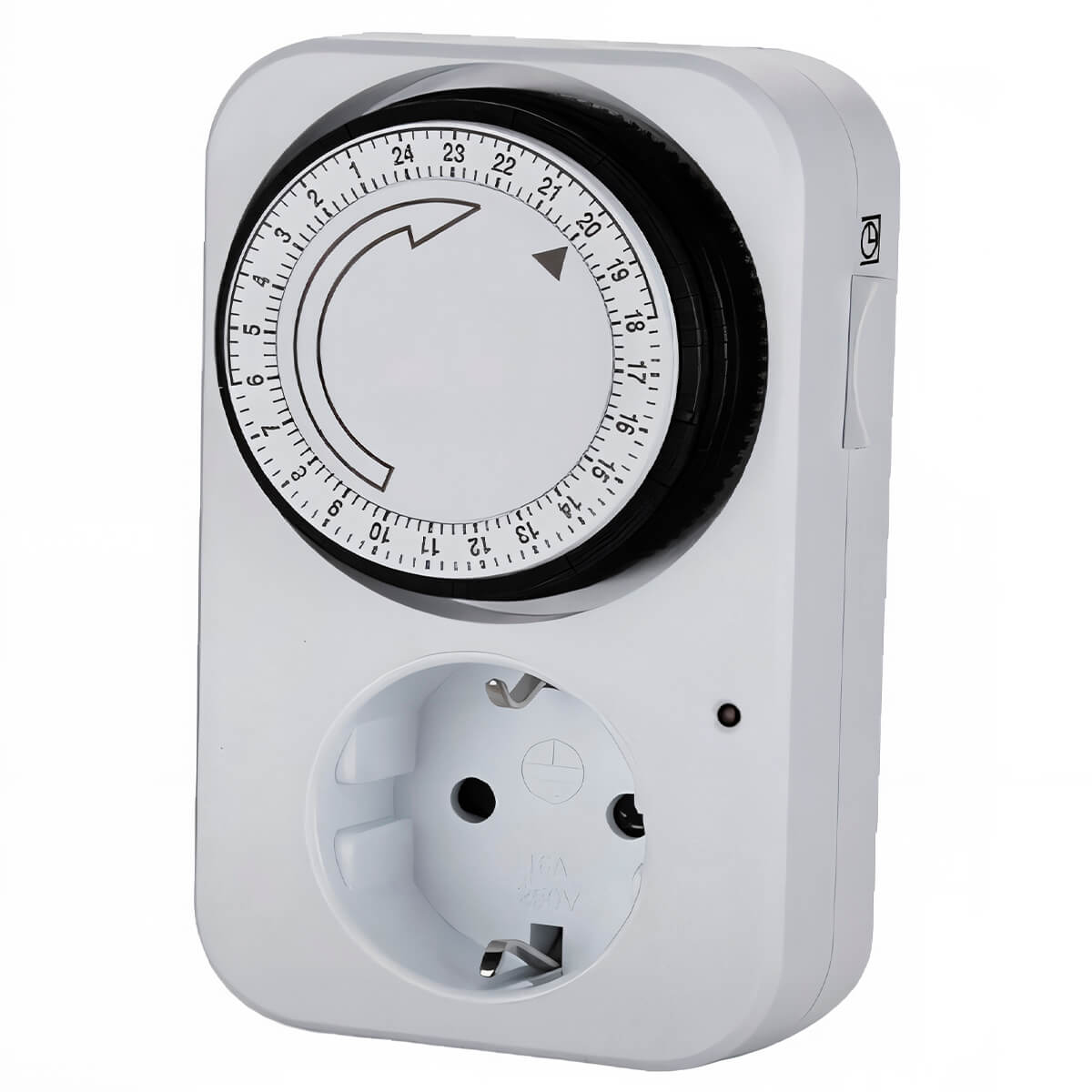 Priză cu temporizator mecanic VITO TIMEC-15 — o soluție practică pentru pornirea și oprirea automată a aparatelor electrice. Se setează pe un ciclu zilnic cu un interval de 15 minute. Suportă o sarcină de până la 16 A (max. 3,5 kW).