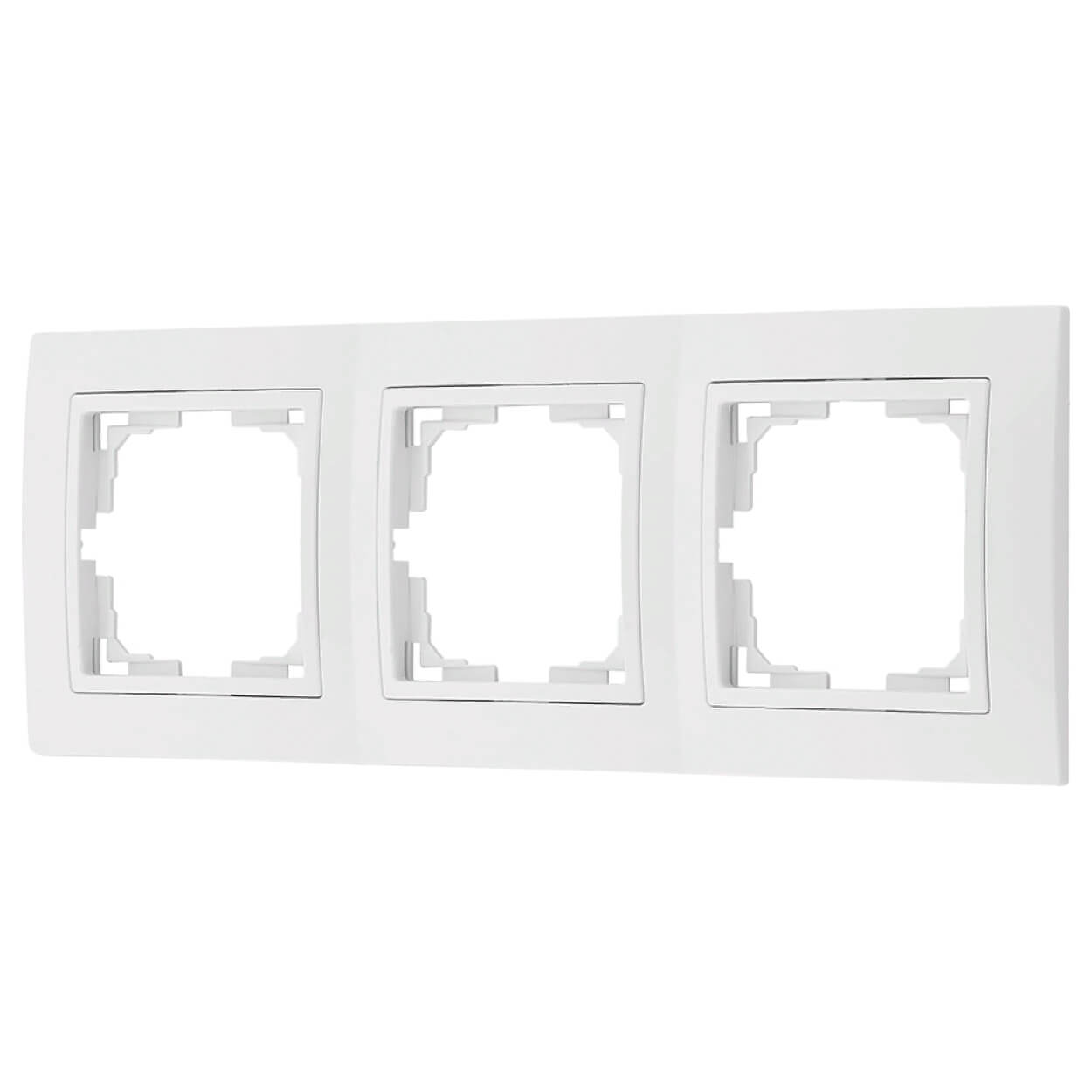 Rama cu 3 locuri Bylectrica УЮТ, de culoare albă, cu rama decorativă fixă ЮЛИГ.735212.281. Fabricată din plastic ABS durabil. Include 3 locuri. Dispune de grad de protecție IP20. Nu are capac. Aparține seriei УЮТ. Greutatea netă este de 0,038 kg. Destinată montării pe perete. Dimensiuni: înălțime - 82 mm, lățime - 224 mm, adâncime - 9 mm.