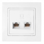 Priza pentru calculator Bylectrica УЮТ, albă, modelul PK216-010, cu două locuri. Este livrată complet asamblată, fără a fi necesară o ramă suplimentară. Montajul se face încastrat. Dispune de 1 pol. Nu are împământare și obturatoare de protecție. Nu are capac. Are grad de protecție IP20. Fabricată din plastic durabil. Este prevăzută cu 2 ghișee cu conector RJ45 de categorie 5e. Aparține seriei УЮТ. Nu este modulară.