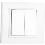 Întrerupător cu două butoane, alb OVIVO MINA: un dispozitiv electric cu două butoane pentru controlul iluminatului sau a aparatelor electrice. Design simplu și elegant. Construcție solidă, ușor de instalat, potrivit pentru diverse stiluri de interior.