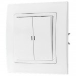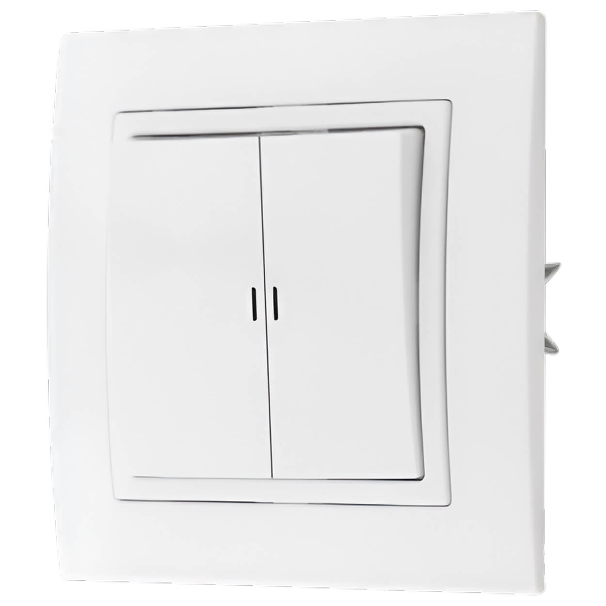 Întrerupătorul cu două butoane Bylectrica УЮТ, cu indicator, de instalare ascunsă, alb, modelul C5 10-867E. Potrivit pentru utilizare în diverse condiții (clasificare climatică UHL4). Funcționează la o tensiune nominală de 220-250 V și o frecvență de curent de 50 Hz. Suportă un curent nominal de 10 A. Potrivit pentru conductoare cu secțiunea de la 1,00 la 2,5 mm. Protecție împotriva prafului (grad de protecție IP20). Dimensiuni de montare între 65 și 75 mm și dimensiuni generale de 82x82x40 mm.