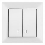 Întrerupător cu două butoane cu indicator, alb Mutlusan Candela 2125-426-0101: dispozitiv electric pentru controlul iluminatului cu două butoane și indicator luminos. Design modern, funcționalitate și ușurință în utilizare. Construcție solidă, montaj simplu, soluția ideală pentru interior.