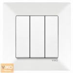 Întrerupător trei butoane instalare ascunsă Viko Meridian alb 90970068