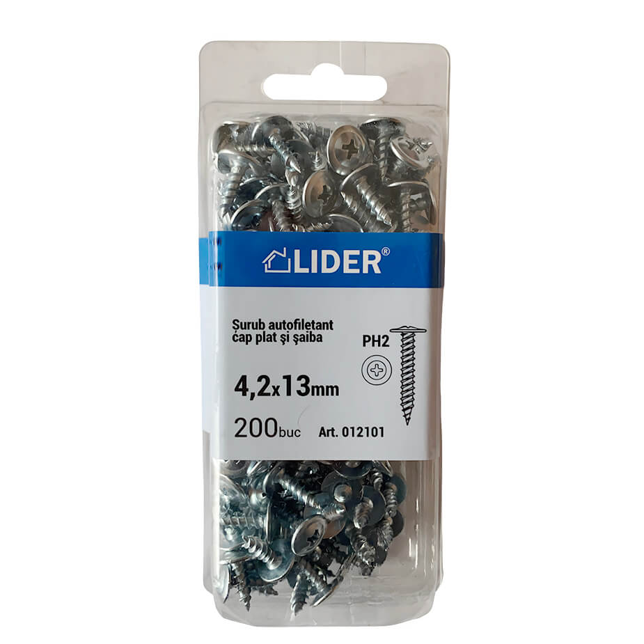 Șurub cu cap plat și șaibă Lider 4.2x19 mm zincat 200 bucăți (Art. 012101)