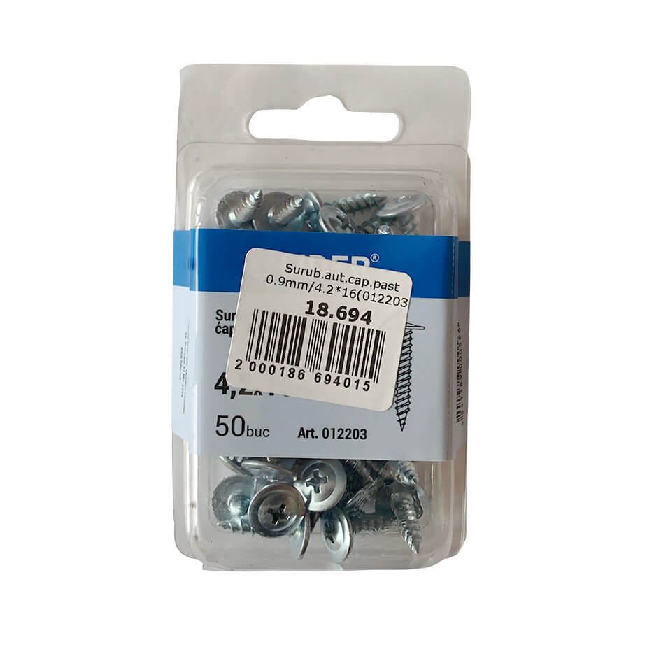 Șurub cu cap plat și șaibă Lider 4.2x16 mm zincat 50 bucăți (Art. 012203)
