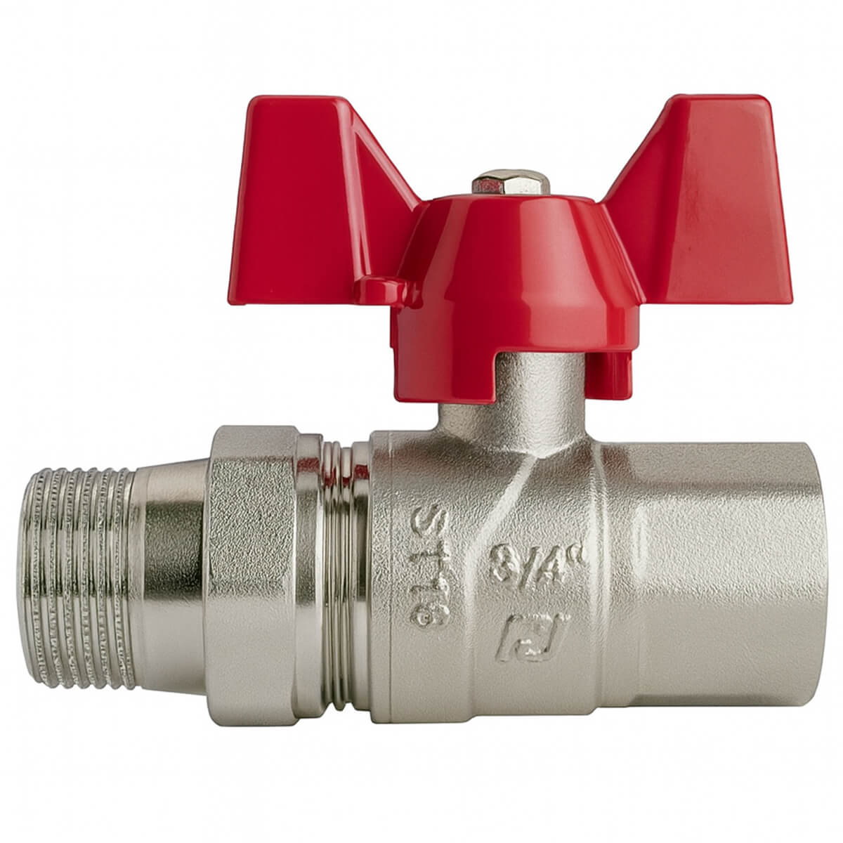 Robinetul cu bilă cu racord olandez Rubano 3/4 filet extern x 3/4 filet intern, întărit, cu mâner tip fluture, din alamă nichelată, este destinat pentru închiderea rapidă și reglarea fluxului de apă în sistemele de alimentare cu apă și de încălzire. Conexiunea demontabilă de tip „olandez” simplifică montajul și permite demontarea ușoară a unui segment de conductă pentru întreținere, fără demontări inutile.