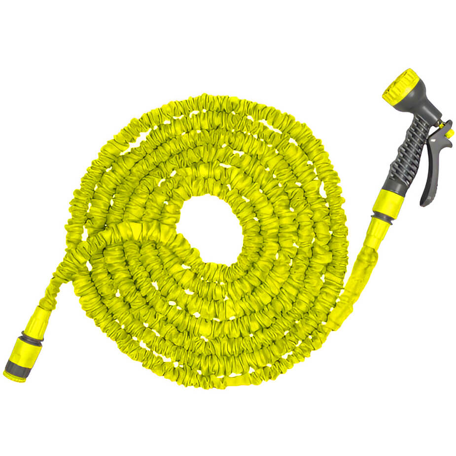 Setul include două conectori, un adaptor filetat pentru robinet și o duză pentru irigare cu 7 moduri de udare. Furtunul este convenabil atât pentru grădinărit, cât și pentru uz casnic. Este potrivit pentru udarea plantelor din jurul casei și pe suprafețe mici, spălarea fațadei, ferestrelor, gardului, aleilor. De asemenea, este ideal pentru spălarea mașinii, fiind ușor de transportat în portbagaj și ocupând puțin spațiu la depozitare. Furtunul este rezistent, nu se învârte și nu se rupe. Funcționează la o presiune a apei de până la 4 bari.