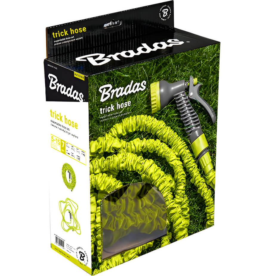Furtun, extensibil (complect) BRADAS TRICK HOSE 7.5-22 m, verde, WTH722GR - este un furtun ușor și compact cu o construcție unică, care se extinde de trei ori la alimentarea cu apă și revine la dimensiunile inițiale după oprirea apei.