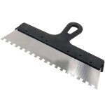Șpaclu zimțat Bau Welt 8x8 mm, 350 mm, oțel inoxidabil 01220-703508 — este un instrument practic pentru lucrări de finisare profesionale și casnice. Datorită dinților pătrați de 8x8 mm, asigură aplicarea uniformă a adezivilor și a amestecurilor de construcții, fiind deosebit de util la montarea plăcilor ceramice, a mozaicului și a acoperirilor decorative.