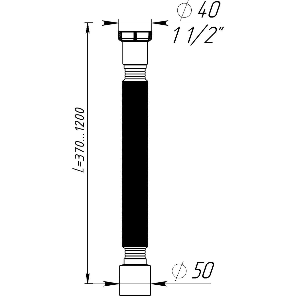 Conductă flexibilă pentru sifon Aquant 1 1/2" x 40/50 mm, din polipropilenă, lungime extinsă 370–1200 mm (T112-80-MR) — destinată conectării echipamentelor sanitare la sistemul de canalizare, în special în spații înguste sau în caz de amplasare atipică.