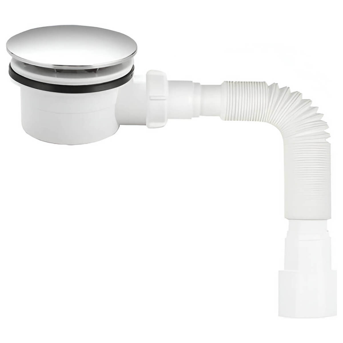 Sifon pentru cădiță de duș Aquant 1 1/2" sub d90 mm, crom, înălțimea de instalare 60 mm, cu conductă flexibilă 40x40/50 mm (V525-30-MR) - Soluția ideală pentru un sistem de drenaj eficient în zonele de duș.