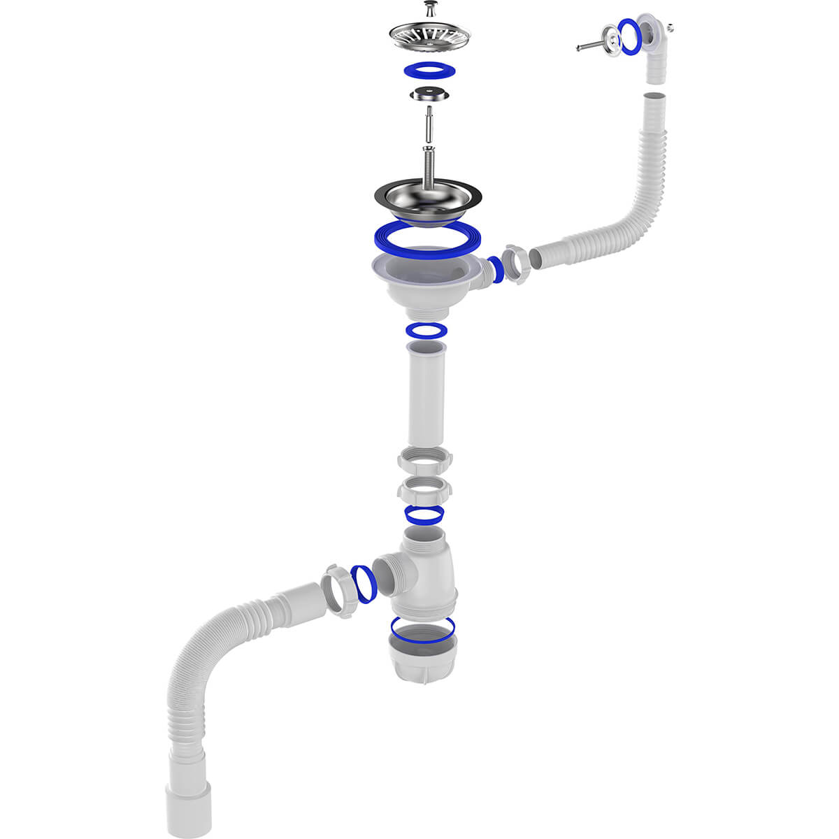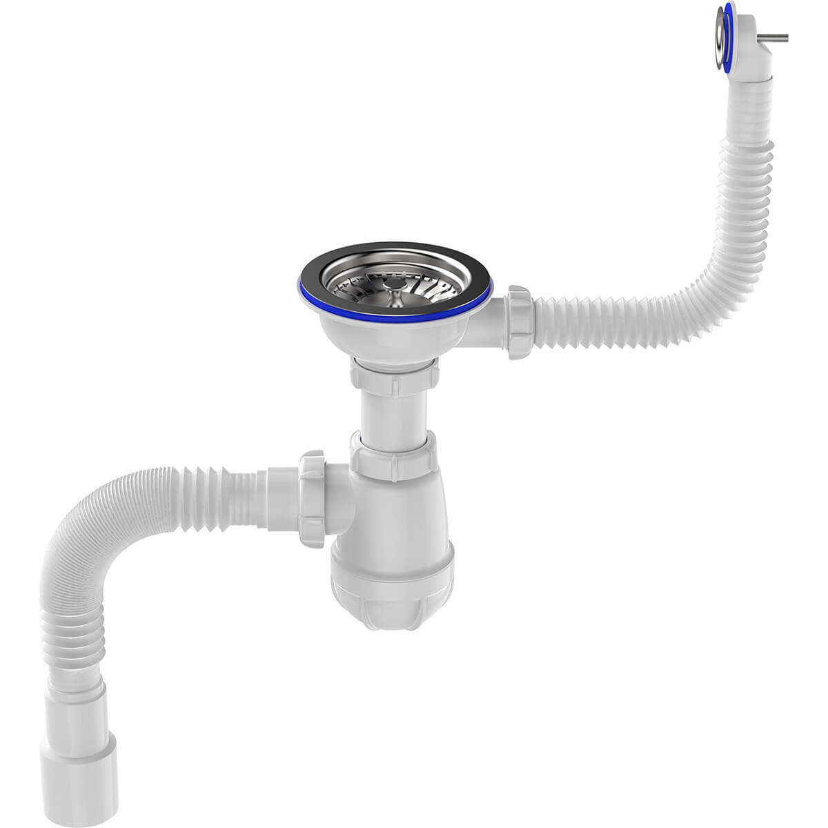 Sifon pentru bucătărie Aquant 3 1/2"x40 mm cu grilă metalică cu revărsare rotundă cu țeavă gofrată 40x40/50 mm (B0139-20-MR) - Capcană universală de tip butelie cu corp mărit pentru un debit maxim și întreținere ușoară. Ideal pentru chiuvetele de bucătărie. Garanția producătorului.