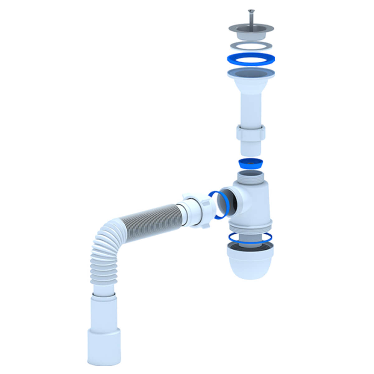- Montaj simplu: Sifonul se instalează ușor, fără a necesita unelte sau cunoștințe speciale.