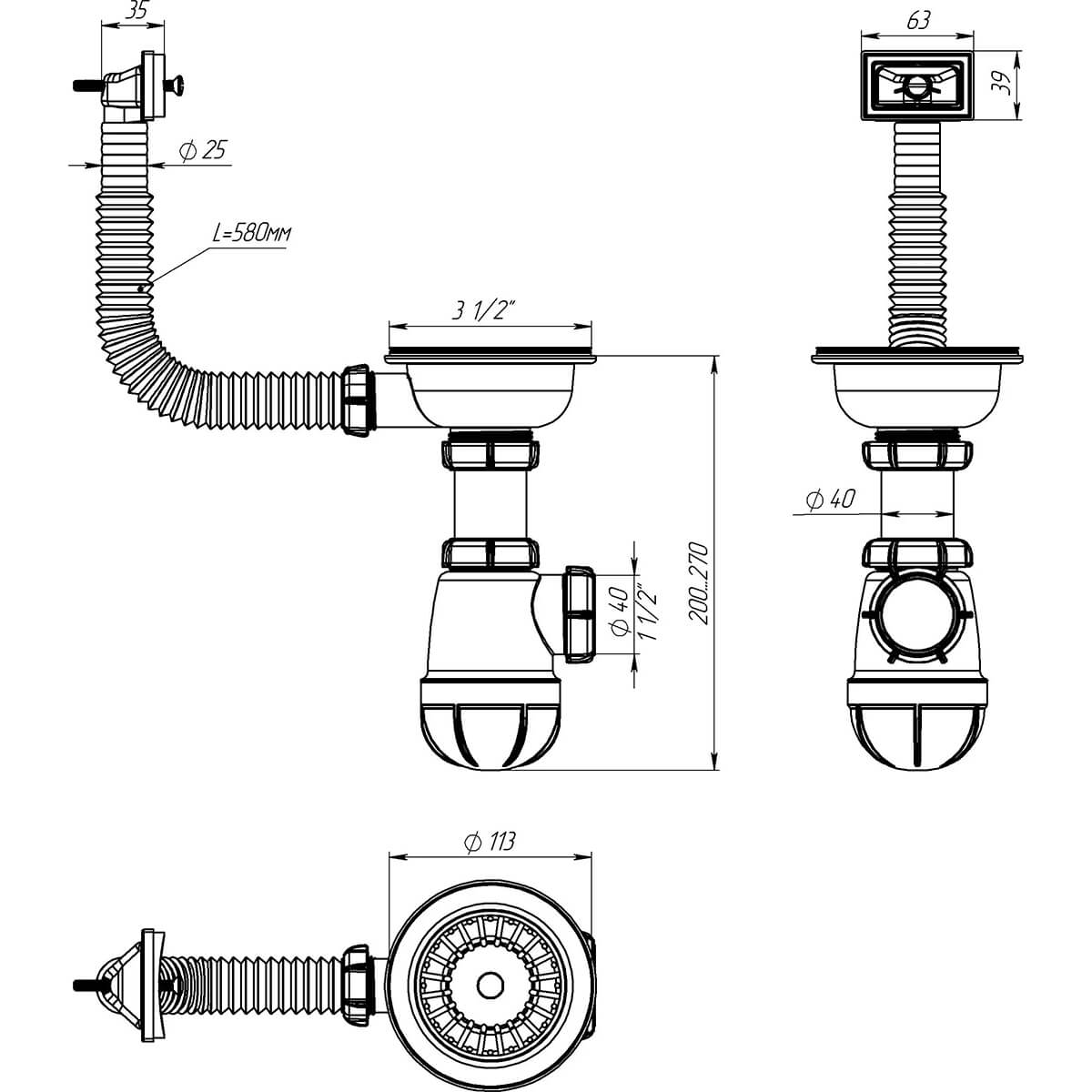 Sifon pentru chiuvetă Aquant 3 1/2" x 40 mm cu grilă metalică cu revărsare dreptunghiulară (B0145-29-MR) - Pentru informații suplimentare, vă rugăm să contactați operatorul magazinului la numărul de telefon 0 (60) 439 390.