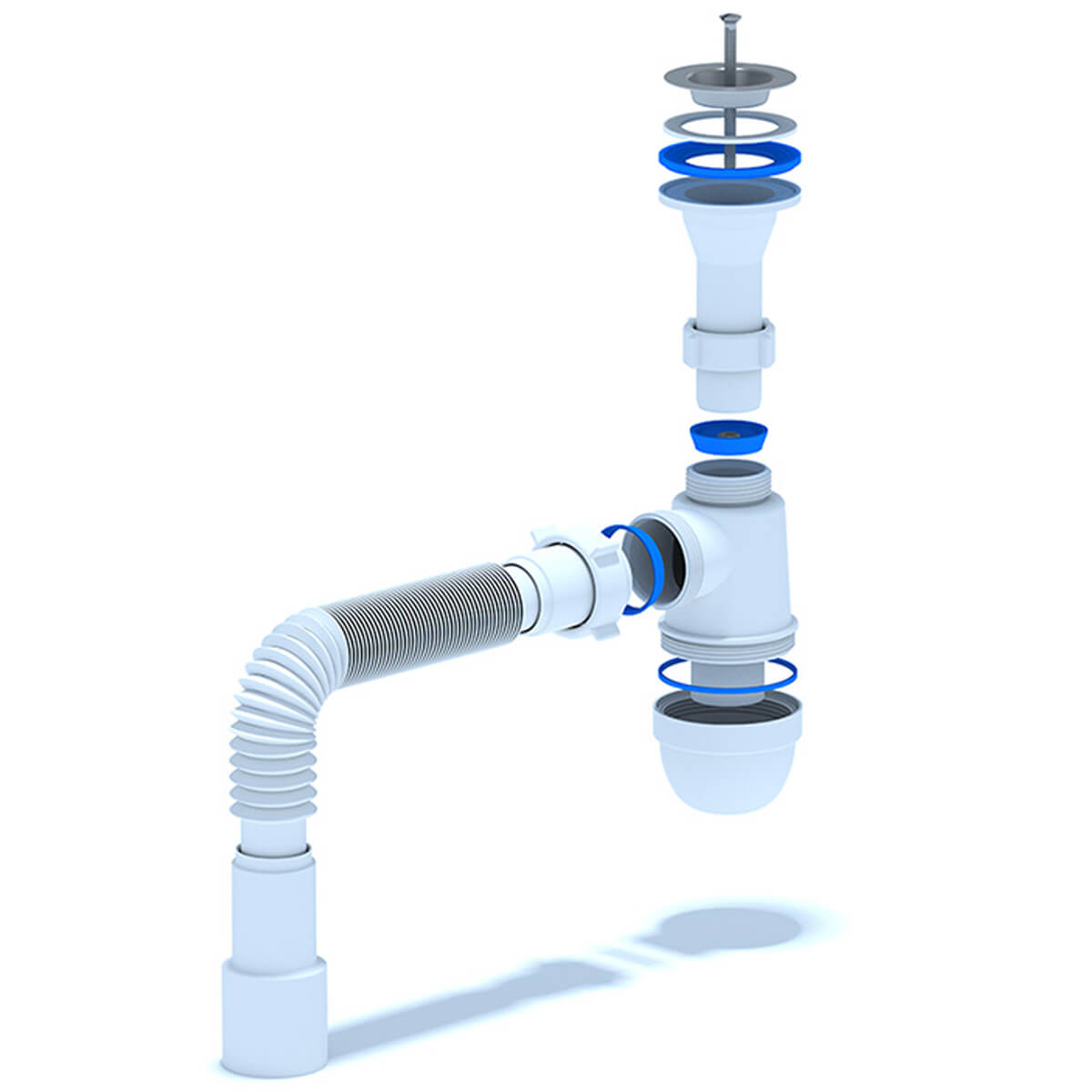 - Întreținere ușoară: Sifonul permite îndepărtarea rapidă și fără demontare a colectorului (paharului) pentru curățare în caz de blocaj sau pentru recuperarea obiectelor mici care au căzut accidental în scurgere.