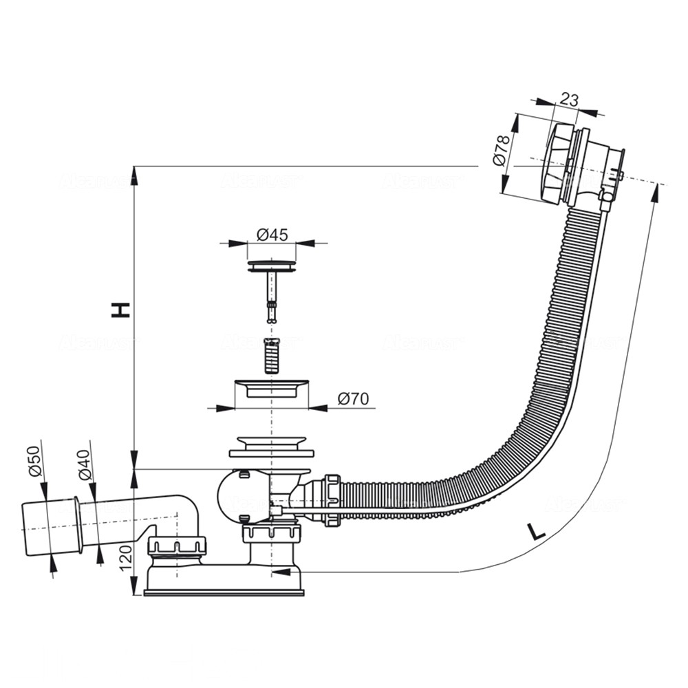 Sifonul pentru cadă ALCAPLAST A55K-80+А770 70" 50 mm automat este soluția perfectă pentru băi. Forma sa tubulară și funcționarea automată oferă o utilizare comodă. Modelul A55K-80+А770 are un diametru de conectare de 50 mm și o viteză de scurgere de 42 l/min. Fabricat din polipropilenă rezistentă, într-o nuanță albă. Producție Alcaplast, Republica Cehă.