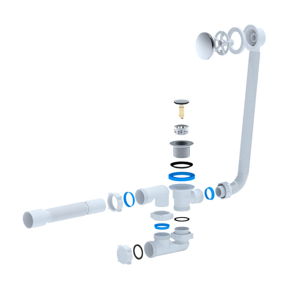 Sifon pentru cadă Ani Plast reglabil, cu ieșire 1 1/2" x 40 mm cu revărsare, Click-clack, și conductă flexibilă 375x40/50 mm EC255S - Pentru informații suplimentare, vă rugăm să vă adresați la consultantul magazinului VERITAN.