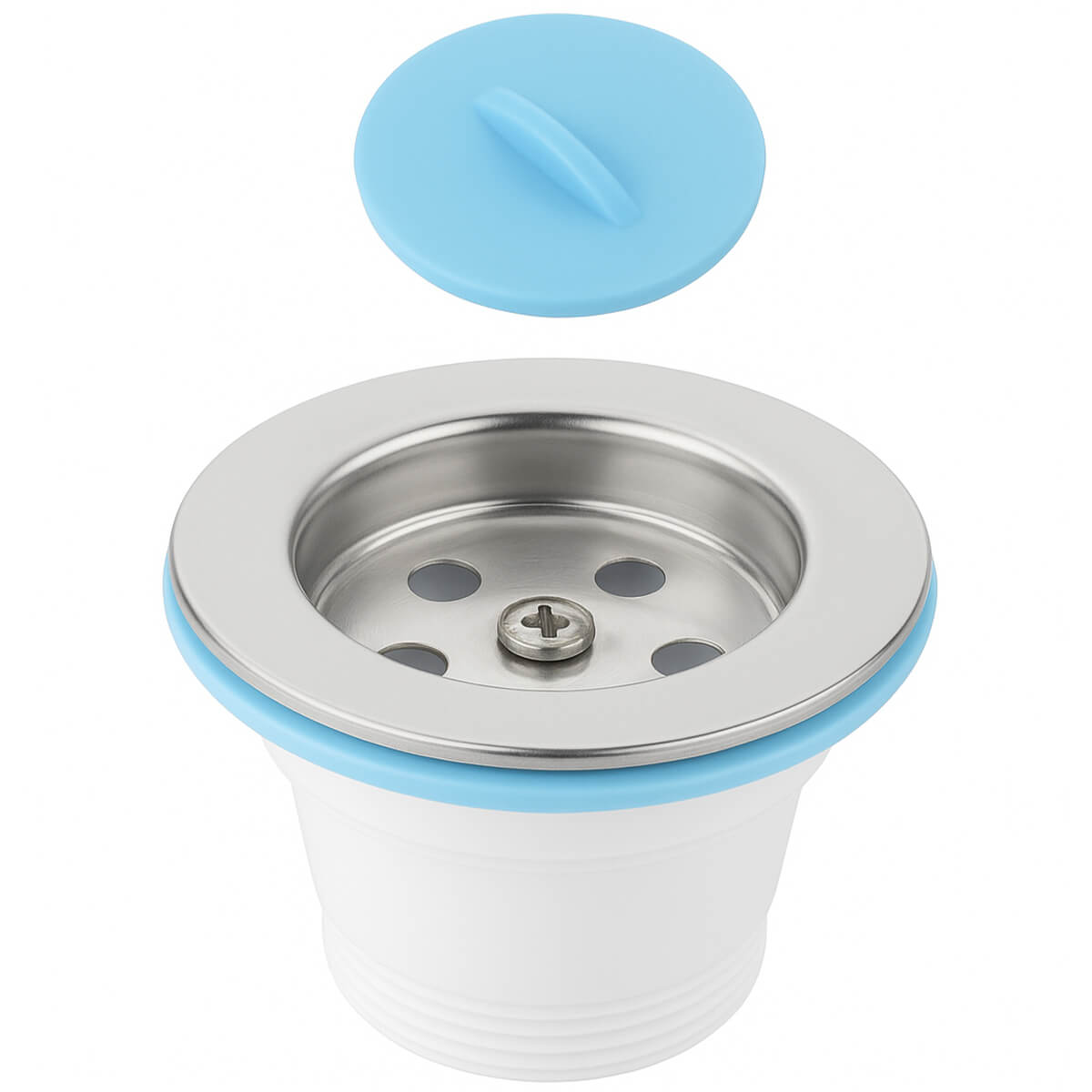 Ieșire pentru chiuvetă Guclu Plastik 70 mm cu dop, din oțel inoxidabil și plastic, conectare 1 1/2"