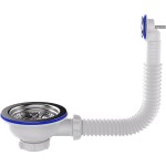 Ieșire pentru chiuvetă cu grilă metalică și o revărsare circulară Aquant 3 1/2" x 40 mm NV320-40-MR - împiedică înfundarea țevii de scurgere cu resturi alimentare. Potrivit pentru chiuvete cu gât lat și revărsare rotundă.