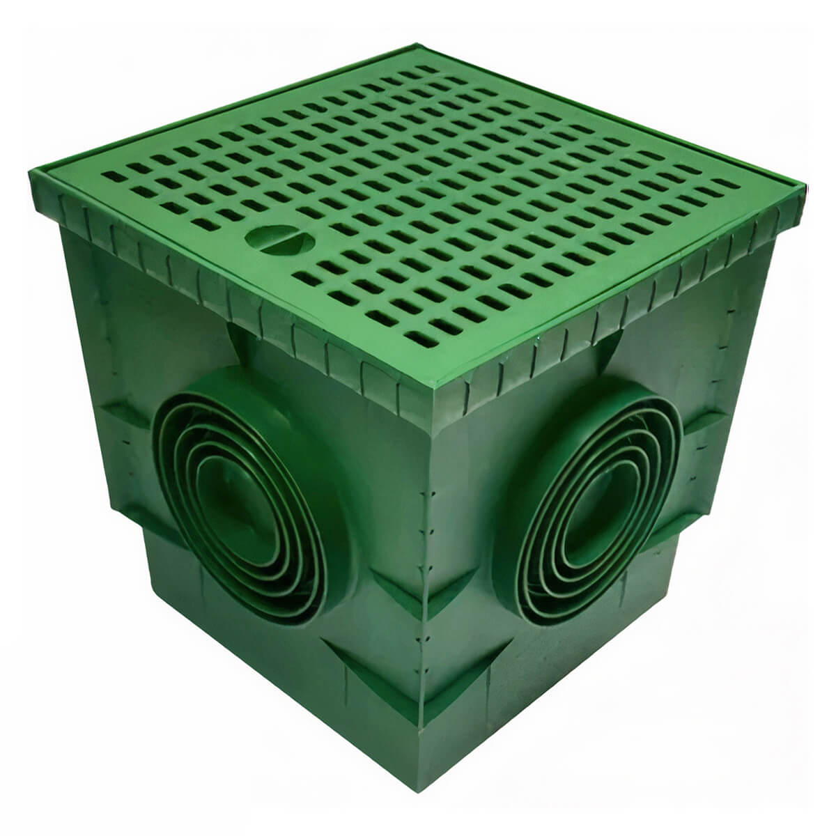 Camin pluvial cu grilă Stamplast TOP 400x400x400 mm din polipropilenă verde 0111745 - Este utilizat pentru a fi instalat sub țevile de coborâre pentru a colecta și devia apa de ploaie de la fundația clădirii. Acesta poate fi utilizat pentru colectarea punctuală a apelor pluviale în diferite zone cu trafic pietonal sau în zona în care circulă sau parchează mașini.