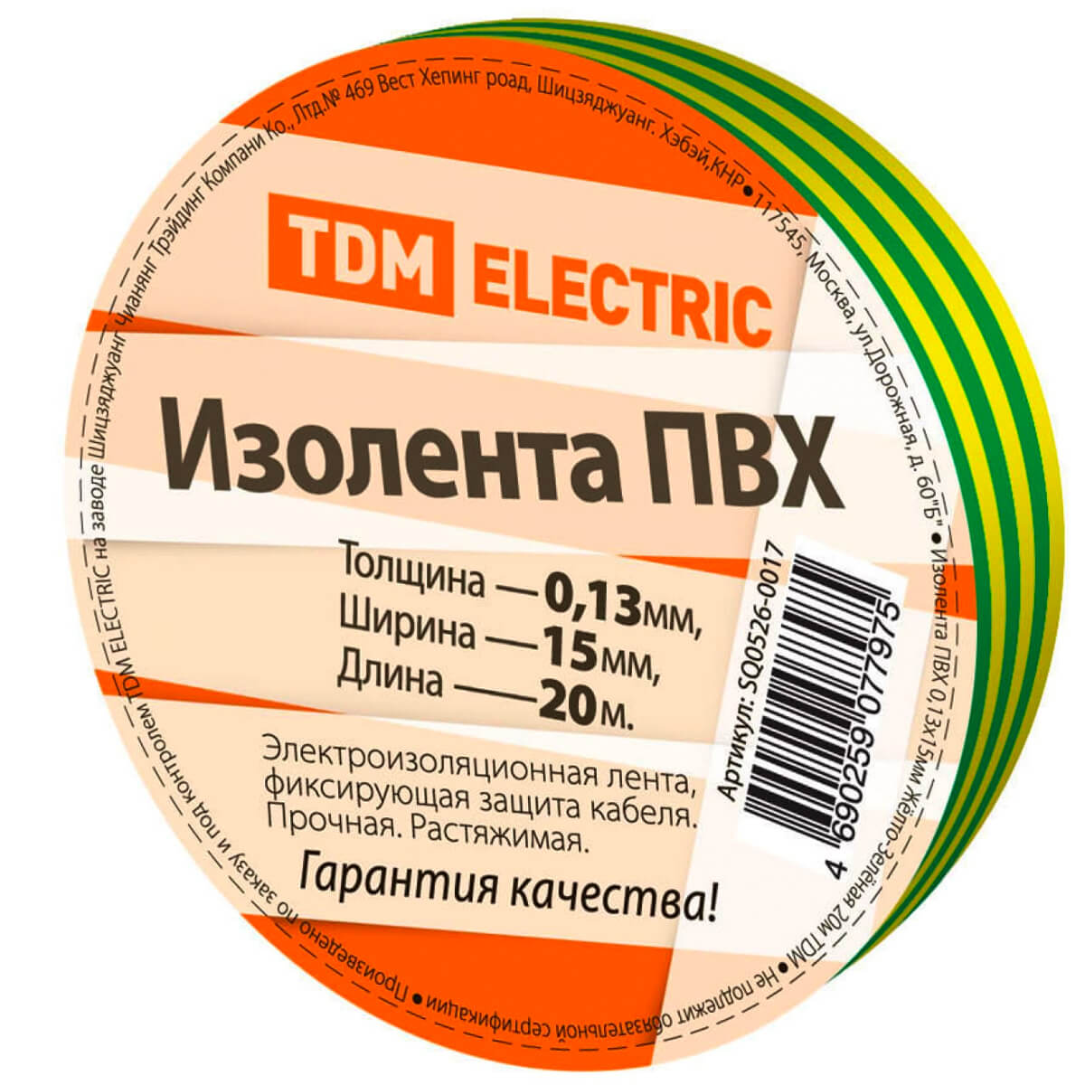 Bandă izolantă PVC 0,13x15 mm, galben-verde 20 m TDM SQ0526-0017