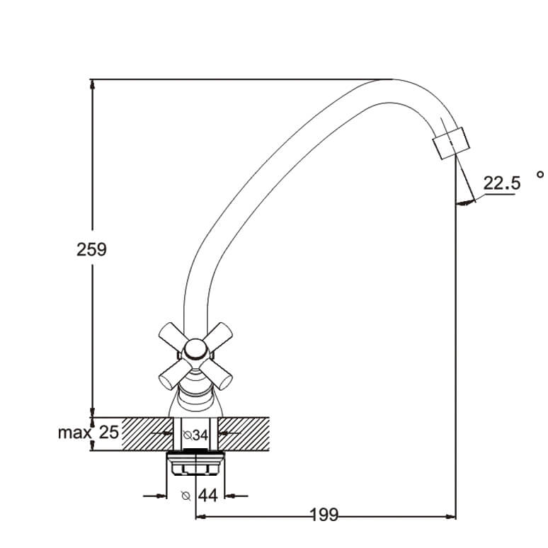 Bateria Zegor DFR-4-A este destinată montajului pe chiuveta de bucătărie și este echipată cu un sistem clasic cu două supape, care permite reglarea precisă a debitului de apă.
