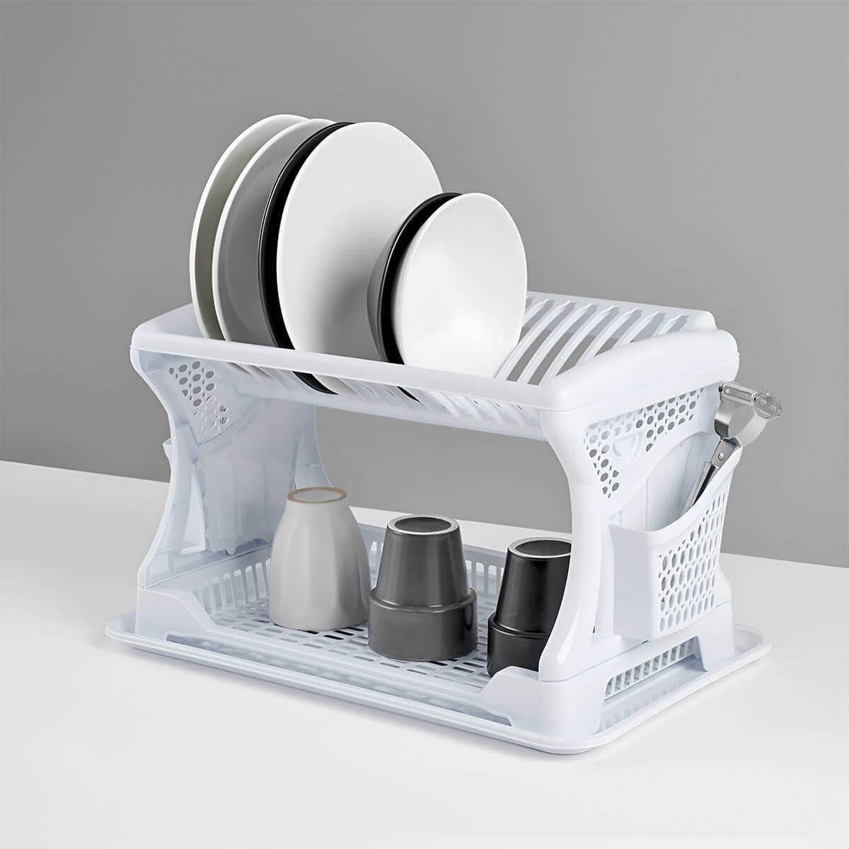 Uscător pentru veselă de masă cu două niveluri DUNYA 470 x 302 x 270 mm, din plastic (Art. 07201) - O soluție comodă și funcțională pentru uscarea vaselor. Fabricat din plastic rezistent, cu dimensiuni de 470 x 302 x 270 mm, asigură organizarea eficientă a vaselor și uscarea rapidă a acestora.