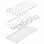 Practic și spațios uscător de vase din metal rezistent de culoare albă. Barele late permit amplasarea și uscarea rapidă a farfuriilor, oalelor și capacelor. Datorită dimensiunilor compacte de 70 cm, se integrează ușor în dulap, eliberând în plus spațiu. Finisajul alb nu se va deteriora în timp și nu îngreunează privirile.