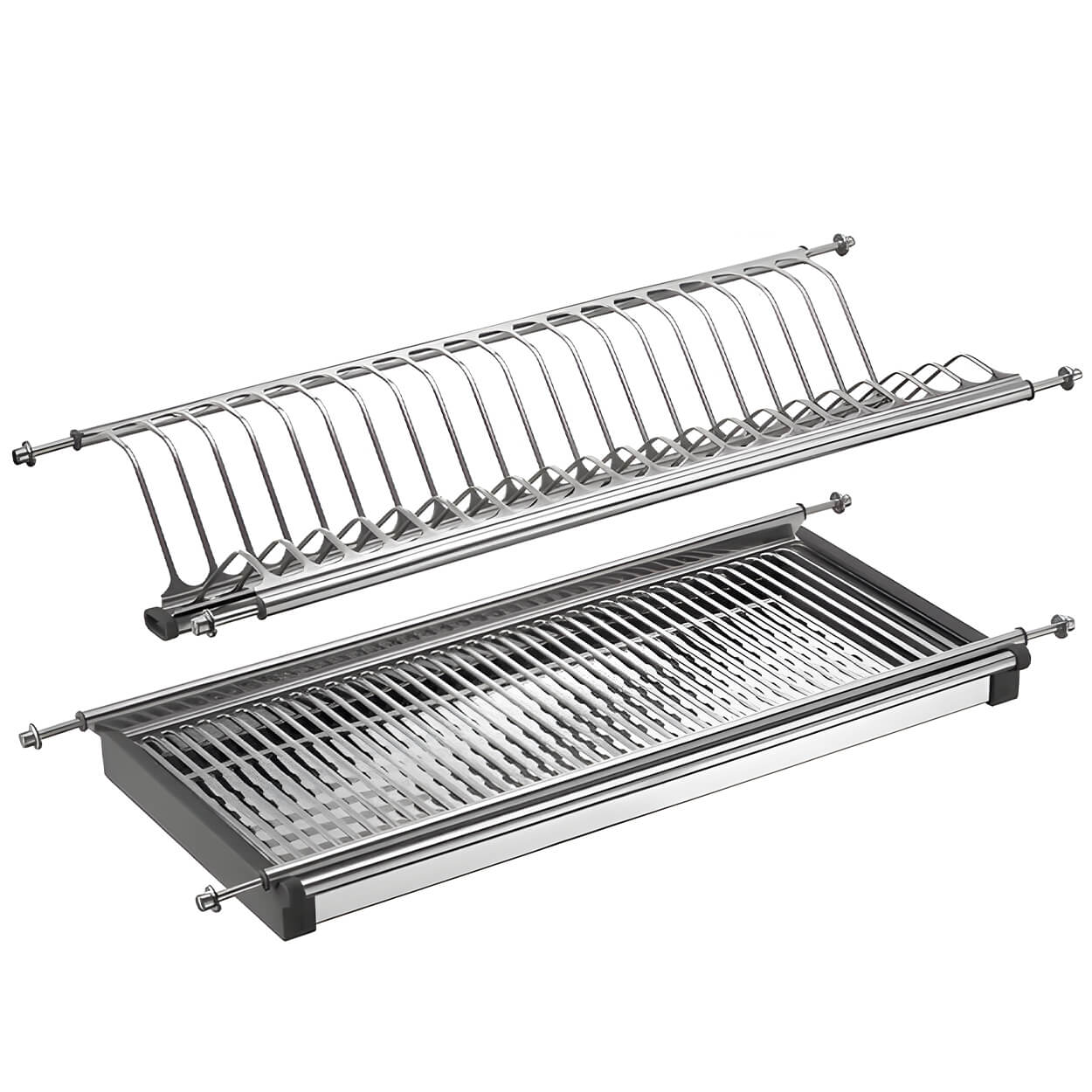 Practicul uscător din oțel inoxidabil – garanție de rezistență îndelungată. Gratile late permit amplasarea și uscarea rapidă a vaselor. Grație dimensiunilor compacte de 80 cm, nu va ocupa mult spațiu în dulap. Design-ul elegant completează interiorul bucătărie și menține ordinea la spălare.