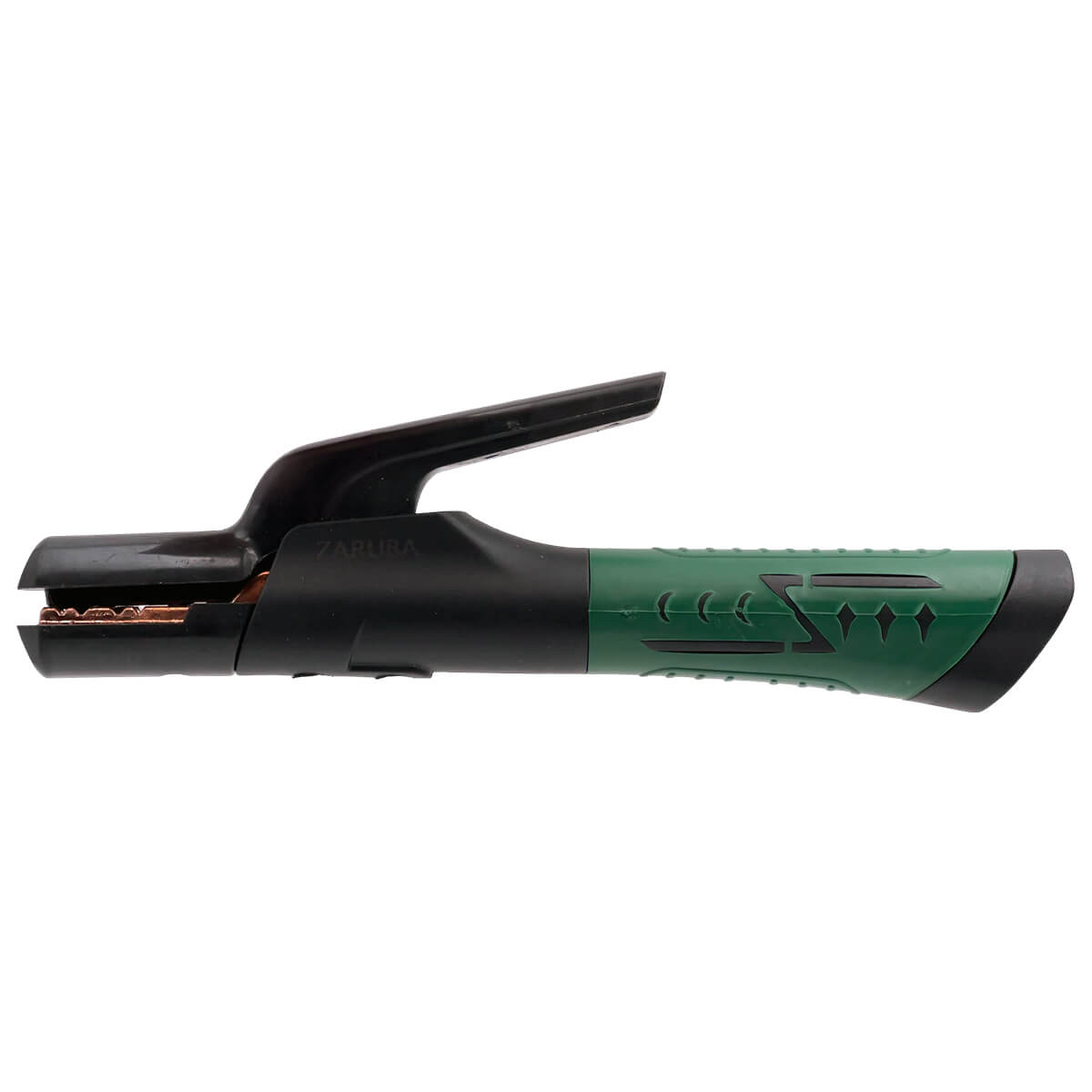 Cleștele portelectrod ZARUBA 1000 A (art. 8878) este destinat sudurii manuale cu arc electric folosind electrozi metalici acoperiți, precum și pentru montarea electrozilor de cărbune. Potrivit pentru lucrul cu electrozi de diametru între 1,6 și 6 mm, asigurând o fixare sigură și un curent stabil de până la 1000 A.